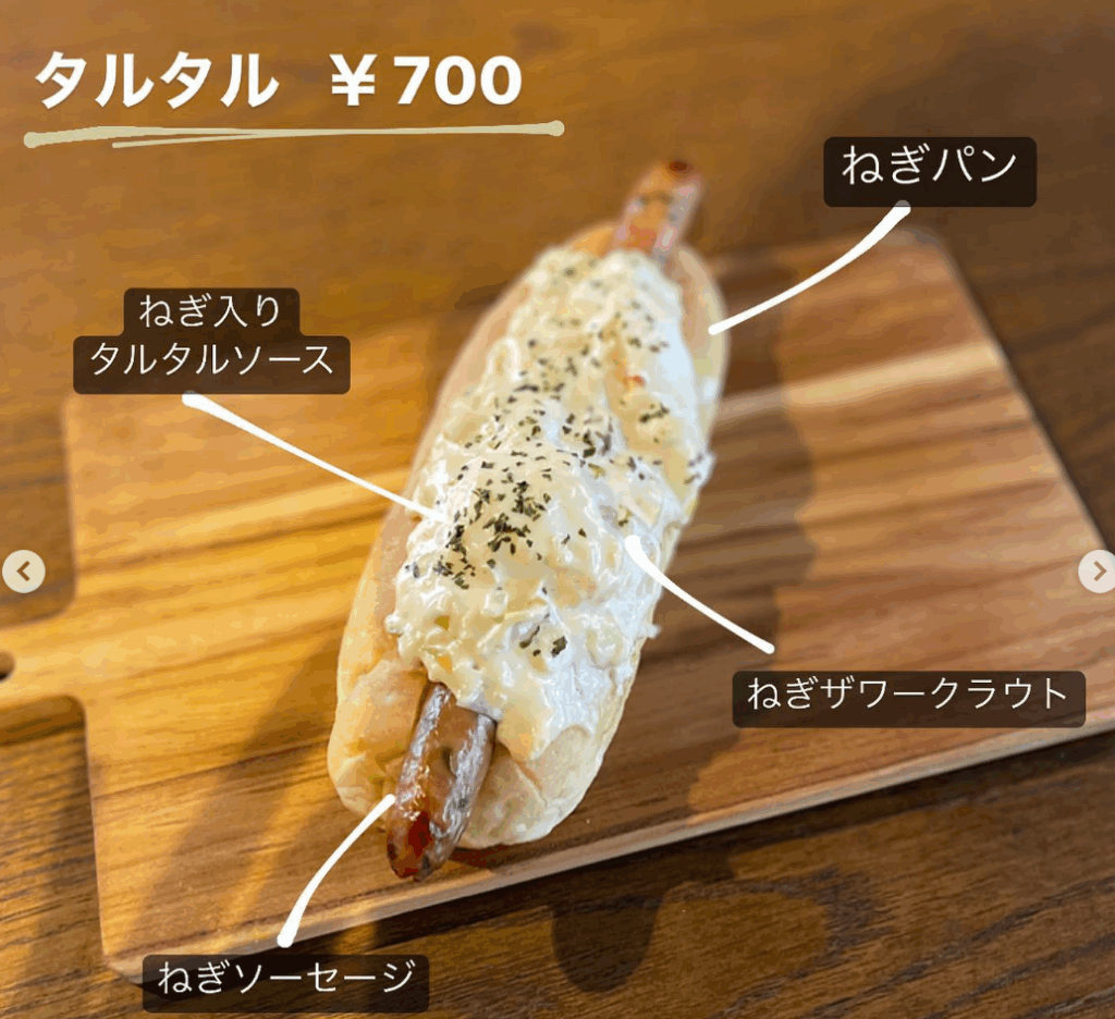 - ねぎドッグは3種(ねぎケチャ、ねぎーねぎー、タルタル)各700円、ハーフサイズ3種セット1,000円もあり