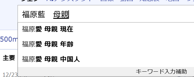 ヤフーで「福原愛 母」と検索すると「中国人」というサジェストが現れます。