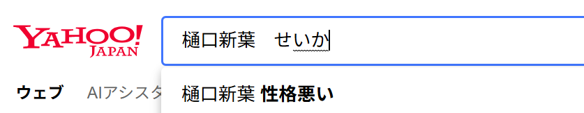 「樋口新葉」と検索すると「性格悪い」というサジェストが登場します。