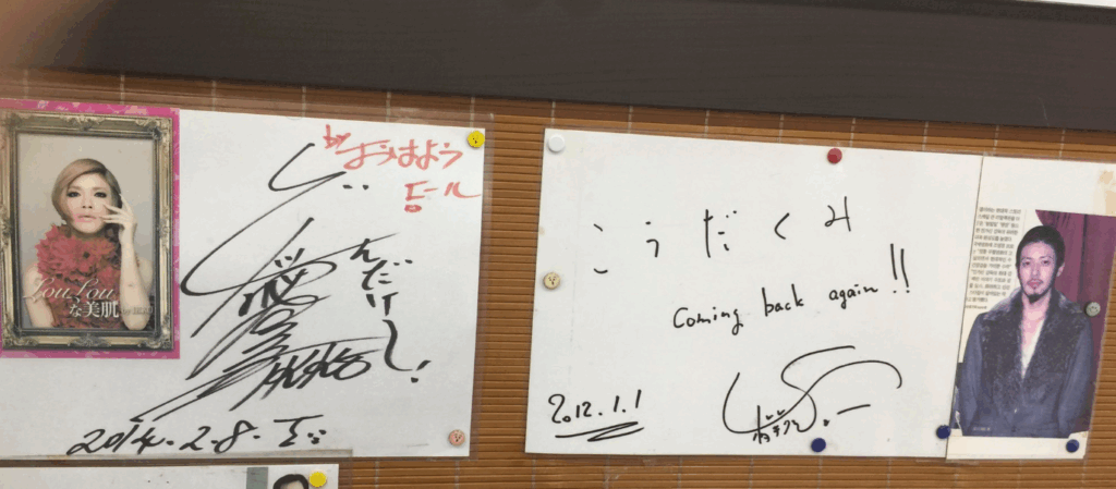 店内は下町情緒あふれる内装で、壁にはサイン色紙がいっぱいです。