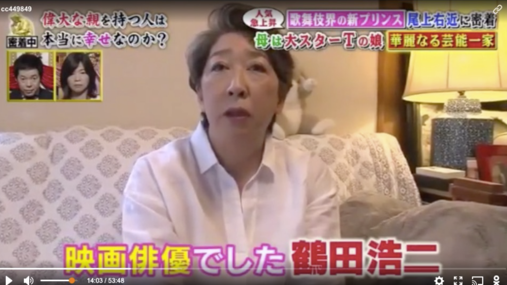 【画像】尾上右近の母親は鶴田浩二の娘で名前は岡村矢尋(おかむら やひろ)!年齢71歳!