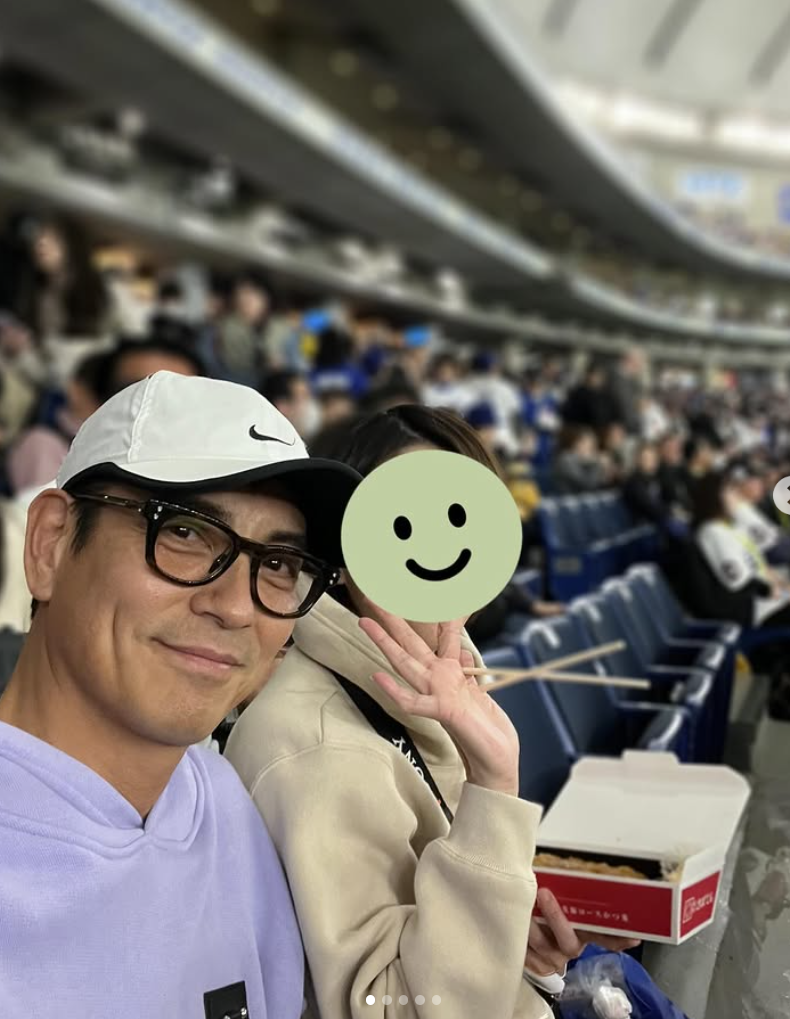 仲良くお出かけすることは多く、SNSには妻と一緒の画像が投稿されていますが、顔はスマイルで隠されています。