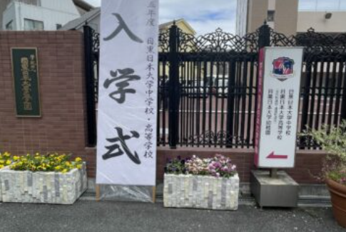 門構えと後方に見える校舎が、目黒日本大学高校と判明。