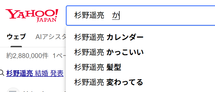 【杉野遥亮】とヤフージャパンで検索すると【変わってる】というサジェストがでます。